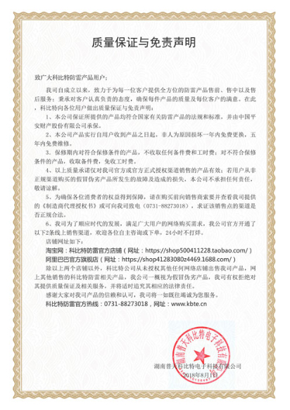 我司自成立以来,致力于为每一位客户提供全方位的防雷产品售前、售中以及售后服务;秉承对客户认真负责的态度,确保每件产品的质量及每位客户的满意。在此,大发官方在线入口向各位用户做出质量保证与免责声明: